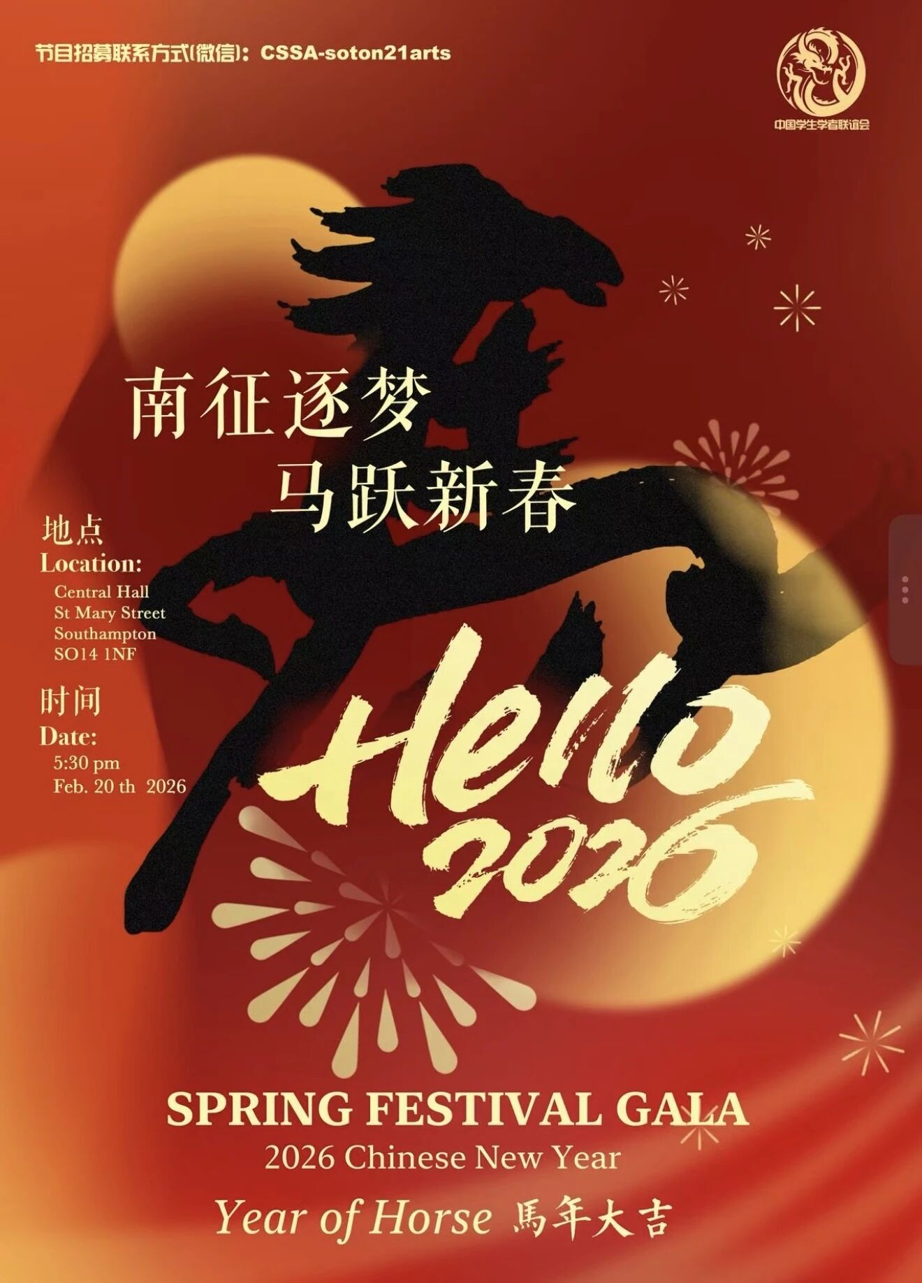 2026/02/20 Friday: Southampton Central Hall by Chinese Students & Scholars Association